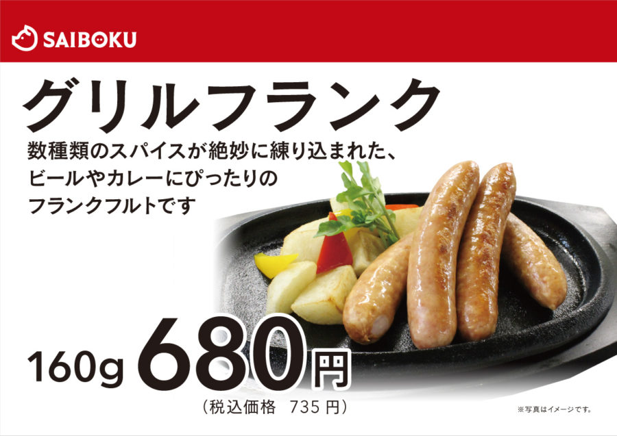 新着情報NEWS & MEDIA お知らせ 2026年4月18日 2026年4月18日(土)スタート!「グリルフランク」を期間限定で販売します 2026年4月18日(土)より、「グリルフランク」を期間限定で本店・直営店にて販売いたします。 毎年恒例の季節限定ウインナーです。 ビールやカレーにピッタリ!バーベキューにもおススメ!ぜひご賞味ください! ※数に限りがございますので、売り切れの際はご容赦ください。 一覧を見る 次の記事