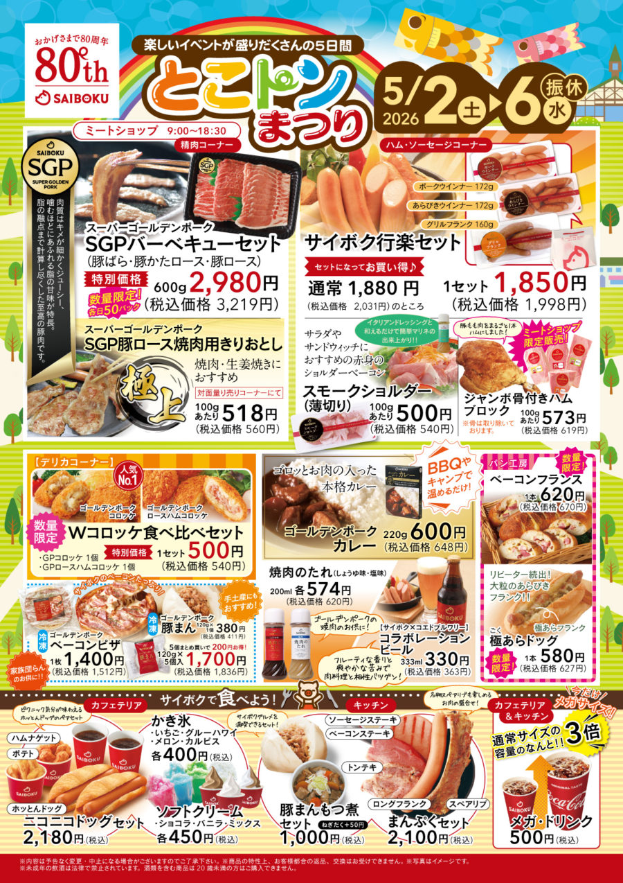 2026年5月2日(土)~5月6日(水・振休)「とこトンまつり」を開催いたします!