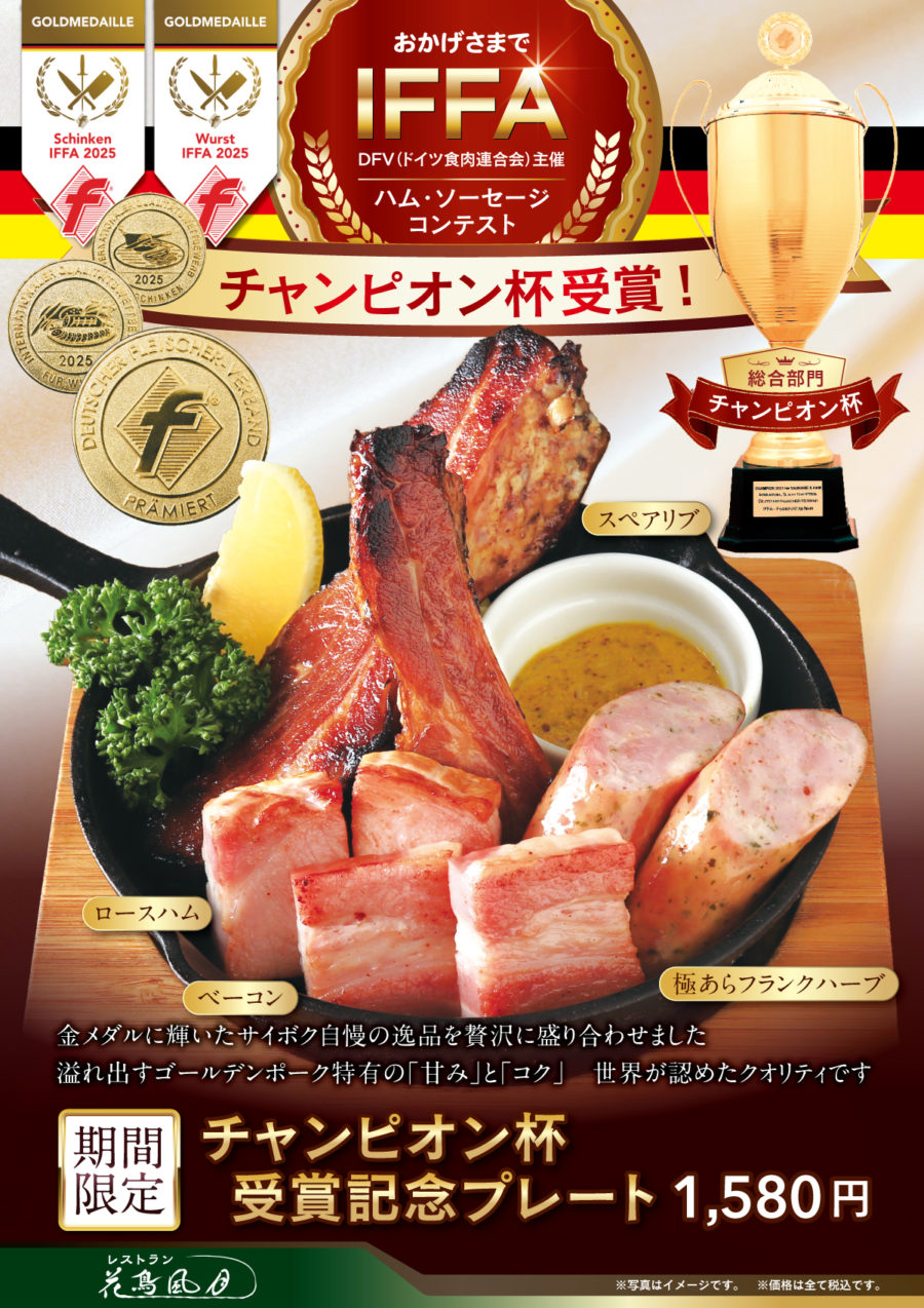 DFV(ドイツ食肉連合会)主催 ハム・ソーセージ国際食品品質コンテストにて、加工品20製品で「金メダル」と「チャンピオン杯」を受賞いたしました!