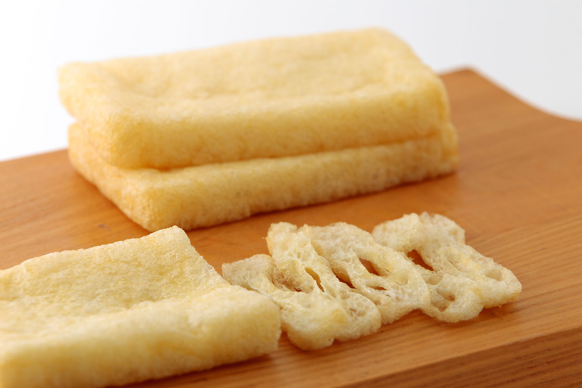 価格が安く、植物性たんぱく質・脂質を補えます。また、大豆製品のため味噌との相性がよく、旨味とコクをプラスしてくれます。作る過程で揚げられているため、豆腐に比べ脂質は高いですが、お湯で油抜きをすれば余分な脂質を落とせます。油抜きをした後に短冊状に切って、味噌を入れる直前に加えます。
